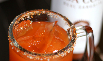 - Pour 12 oz Cider into glass. Top off with a splash of sangrita if you want it extra spicy.